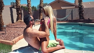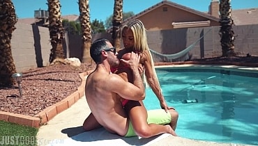 On Kitty's trip across the pond from Australia, her and Brock had plenty of opportunities to strip down and have some fun and they took advantage of each and every one! Watch as a bit of sunbathing quickly escalates to some poolside fucking while they do their best to keep quiet and not get in trouble with the neighbors!
